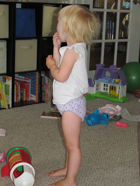 I honestly think that Kailey will be close to done if not done by tomorrow night. I do think that Colin is not always fully aware that he is going but I also think he is exercising some control because a lot of times I'll just notice a small wet spot and nothing more and he will finish on the potty. We'll see what day 3 brings!